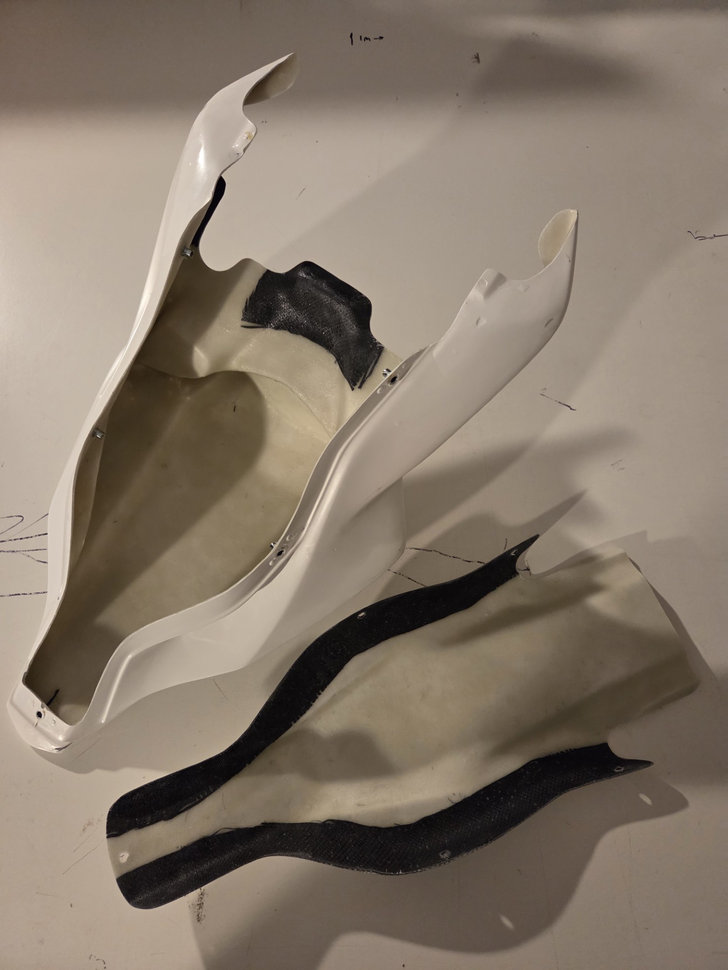 Nut-sert fasteners fitted between top and belly pan but nothing fitted between top and tank cover as its best done when fitted to the bike, no fasteners fitted to the tail and tail wings
